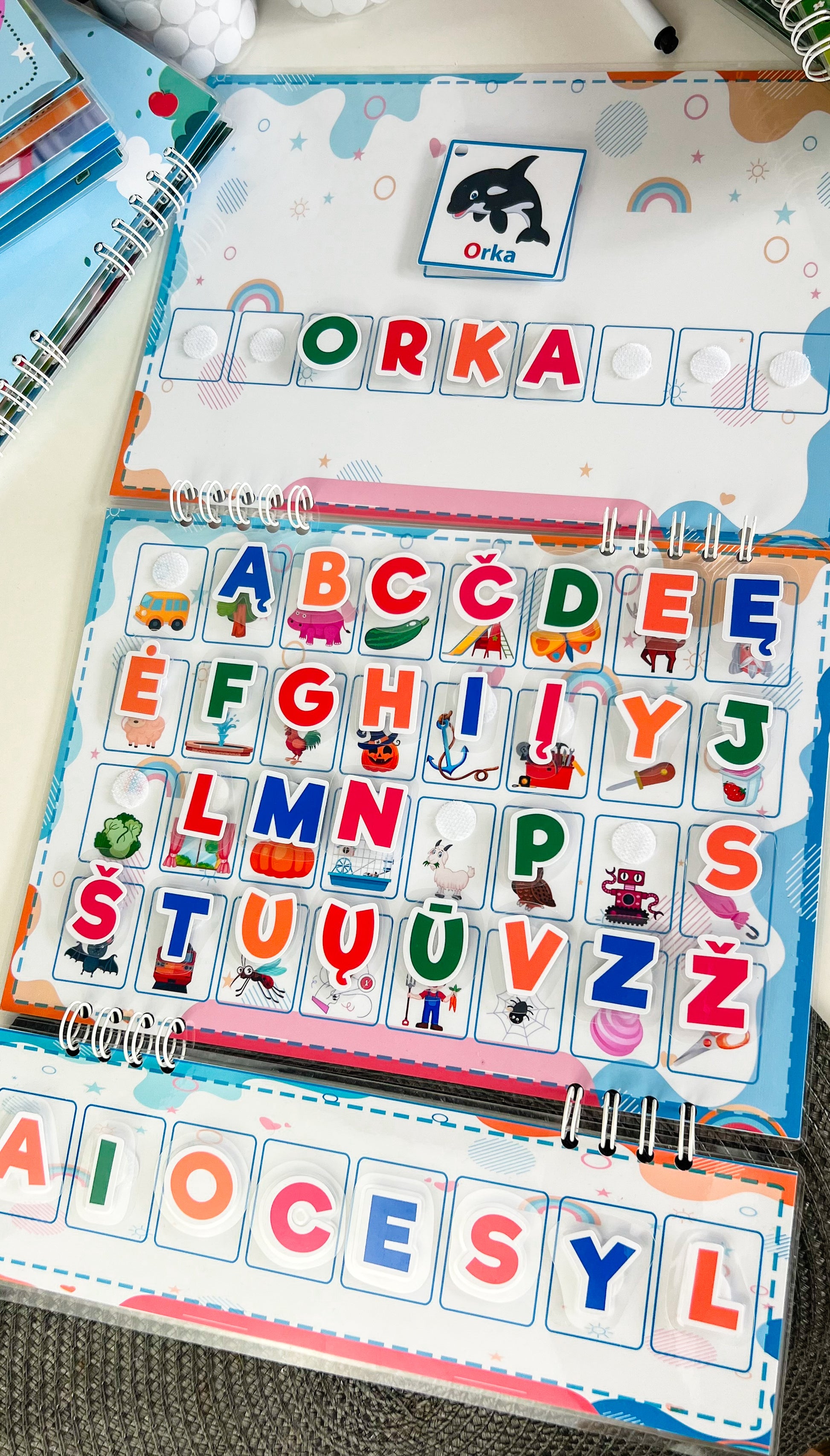 Deka daugkartinių lipdukų - raidelių, vaikas turės galimybę savarankiškai sudėlioti norimą žodelį.