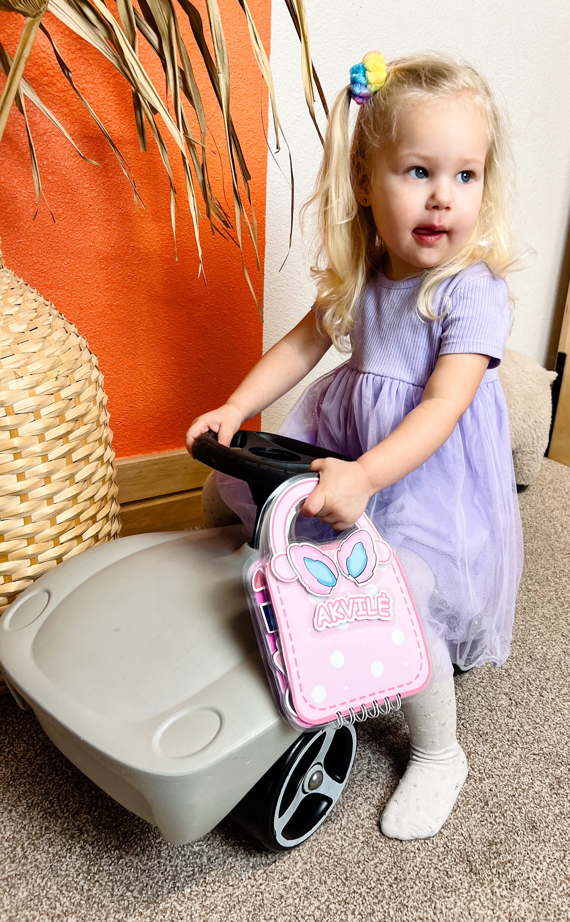 - PERSONALIZUOTĄ knygelės/rankinuko viršelį su vaikučio vardu!